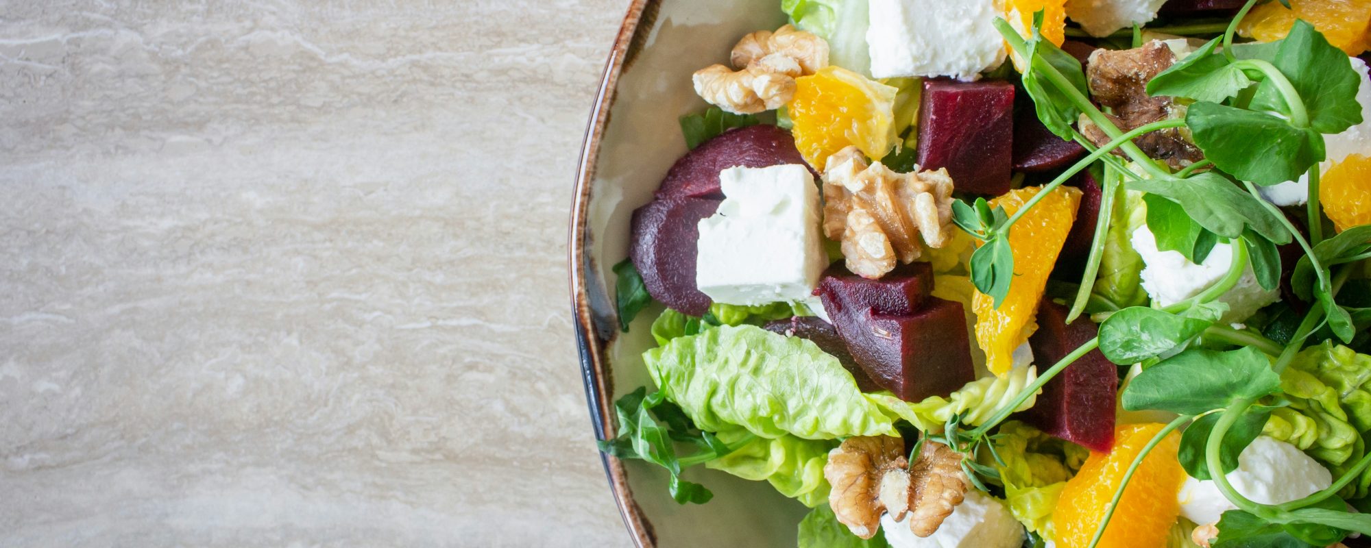 Grillowany filet z łososia, mieszanka sałat, cykoria, ser camembert, pomarańcza, grzanki, sos vinaigrette z tymiankiem